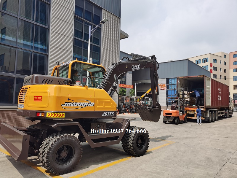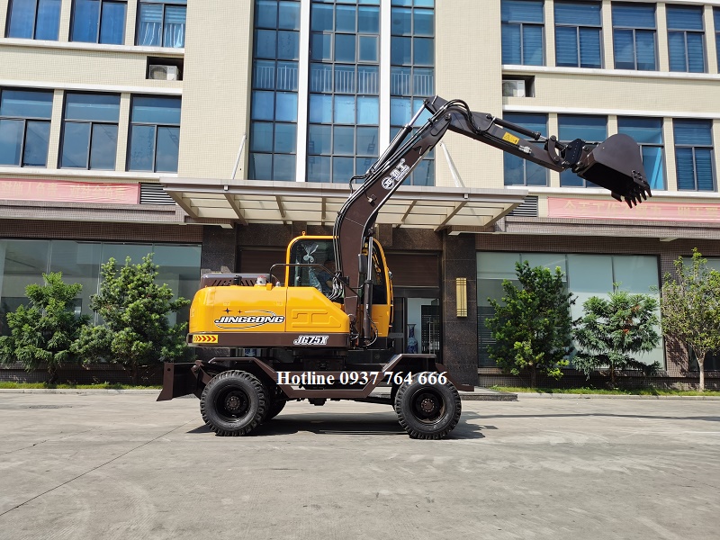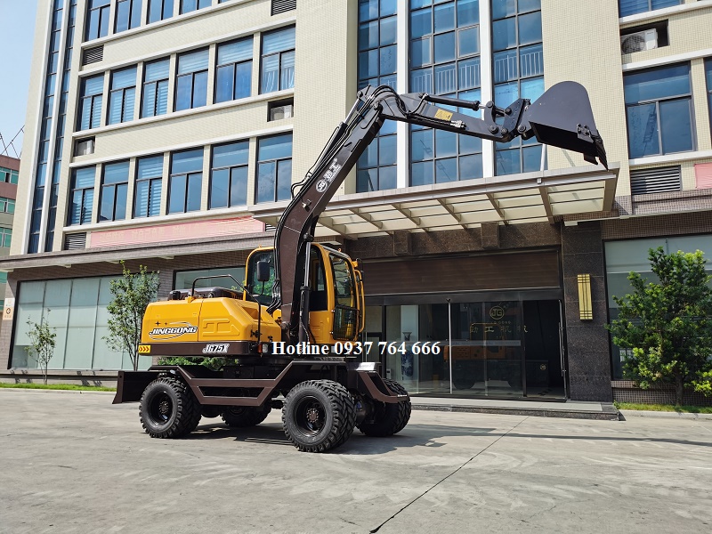 Máy đào bánh lốp Jinggong JG75 được thiết kế với tự trọng 6 - 7 tấn. Đây là mẫu máy đào bán chạy nhất của thương hiệu Jinggong trong thời điểm hiện ại. Xe được trang bị động cơ 50 kW với các tùy chọn thương hiệu động cơ: Yunnei, Yuchai. Hệ thống thủy lực được nhập khẩu tại các nhà sản xuất hàng đầu tại trung quốc. Hệ thống di chuyển, vận hành đều được Jinggong chế tạo với hiệu quả cao. Xe có thể được trang bị thêm nhiều bộ công tác giúp mở rộng phạm vi làm việc của máy.