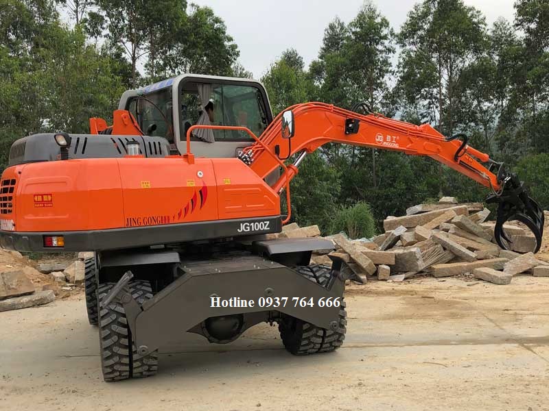 Máy đào bánh lốp Jinggong JG75S và JG75X là dòng máy với thiết kế tự trọng 7 tấn. Đây là dòng máy với độ cơ động cao được trang bị nhiều bộ công tác đặc biệt là cơ cấu gắp gỗ kẹp xoay 360 độ. Điều này giúp cho chiếc xe có thể vận chuyển và bốc xúc hàng hóa rất tốt trong các bãi tập kết, lên các xe vạn chuyển,... Xe với nhiều tùy chọn loại động cơ: Yunnei, Yuchai theo sự lựa chọn của Khách hàng.
