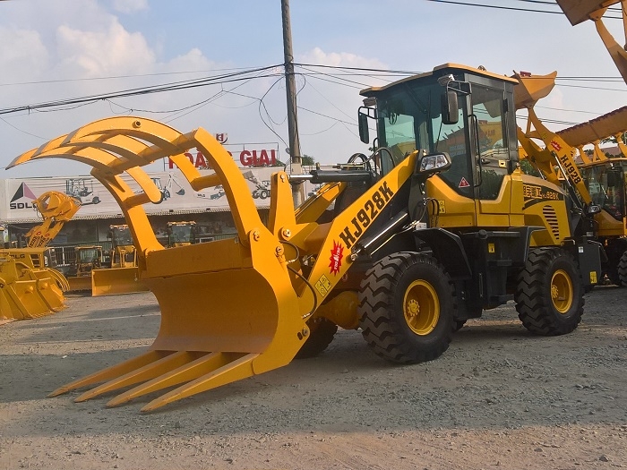 Máy xúc lật gắp gỗ HJ928K gầu 0.8 m3 là sản phẩm máy gắp gỗ mini trên máy cơ sở máy xúc lật HJ928. Thiết bị được lắp thêm bộ công tác gắp gỗ (kẹp gỗ) nhằm giải quyết bài toán nhân công trong các doanh nghiệp chế biến lâm sản. Với khả năng cơ động cao và bốc xếp nhanh, thiết bị khắc phục được bài toán sức lao động thủ công hiện nay. Với giá thành đầu tư không lớn, HJ928K là thiết bị đáng để đầu tư với các doanh nghiệm: dăm gỗ, gỗ bóc, viên nén hiện nay tại Việt Nam.