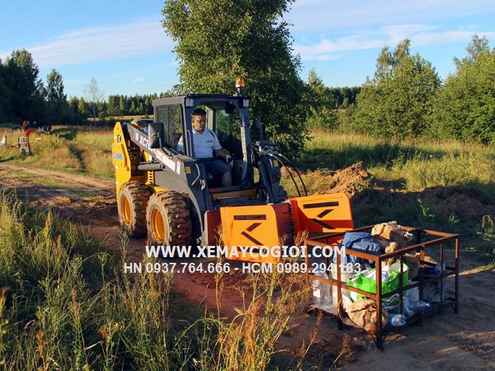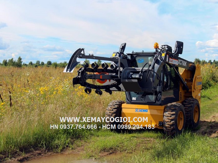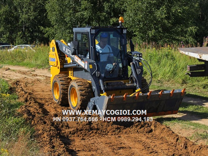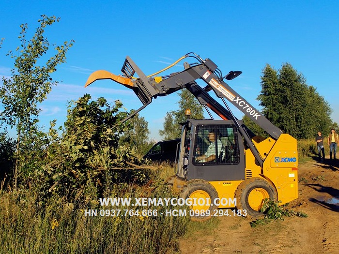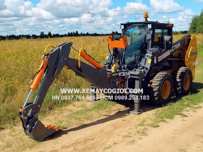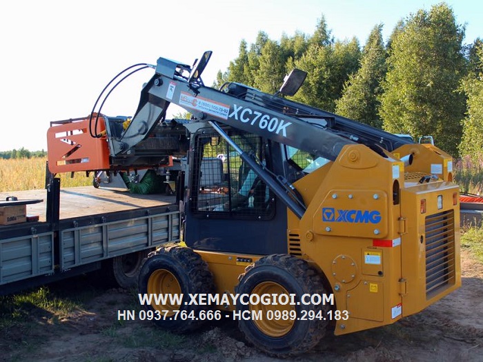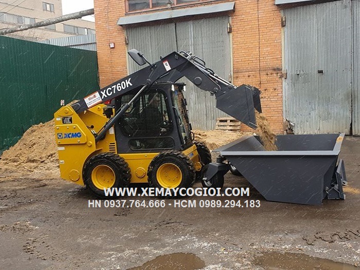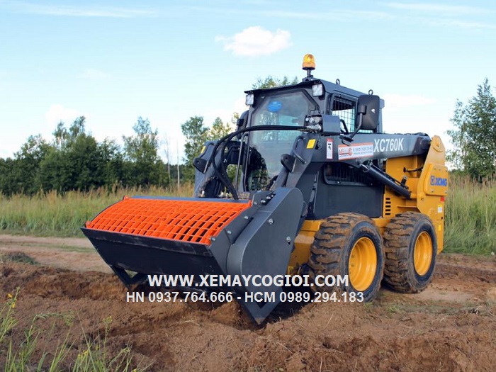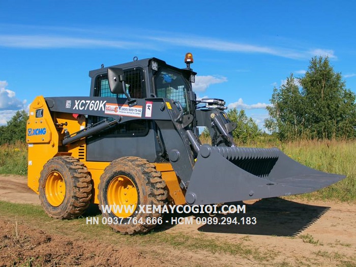 Máy xúc lật XCMG XC760K gầu 0.6 m3 tải trọng nâng 1080 kg với thiết kế đổ qua đầu và cách di chuyển đặc biệt nên được gọi là máy xúc trượt. Thiết bị được thiết kế cấu trúc nhỏ gọn dễ di chuyển trong các không gian nhỏ và hẹp.