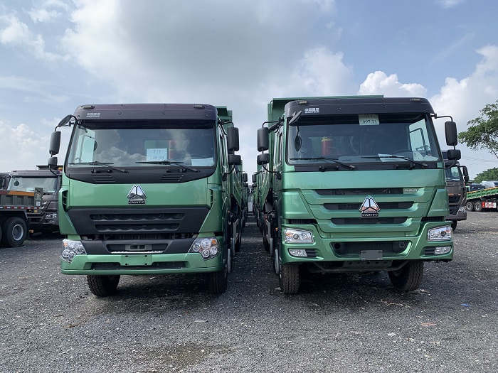 Xe ben 4 chân Howo 380hp cabin V7G và cabin HW76 (từ trái qua phải).